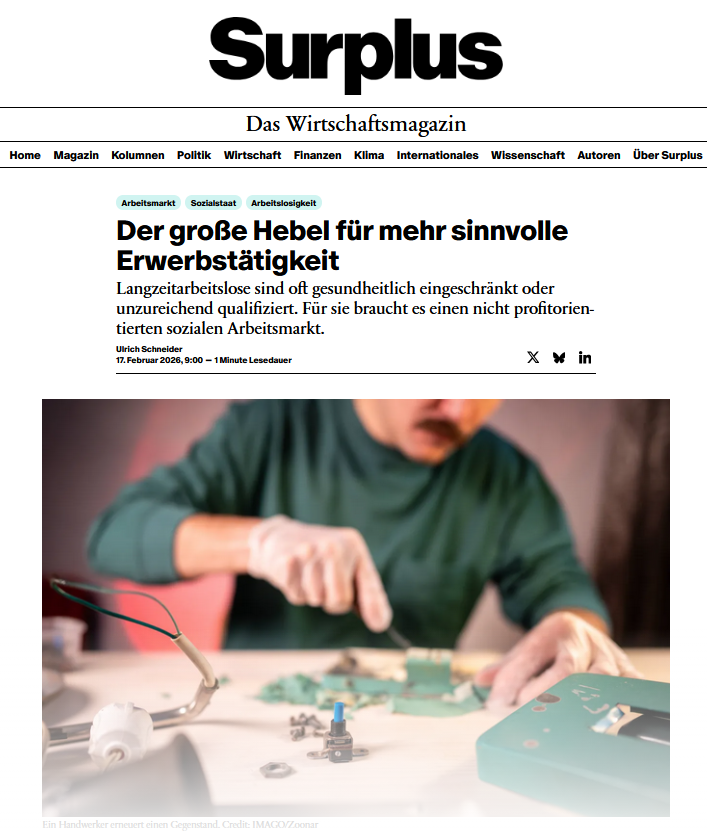 Hunderttausende Grundsicherungsbezieher verspricht diese Bundesregierung in Erwerbsarbeit zu vermitteln. Das ist eine Illussion. Langzeitarbeitslose sind oft gesundheitlich eingeschränkt oder unzureichend qualifiziert. Für sie braucht es einen nicht profitorientierten sozialen Arbeitsmarkt. Hierzu meine Gedanken im Surplus Wirtschaftsmagazin